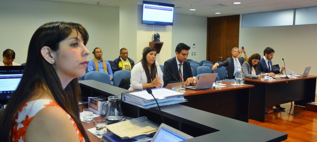 El Tribunal estuvo integrado por los ministros Alejandro Ruiz, presidente, y Felipe Sabando, además de la ministra suplente Ximena Insunza. Los alegatos estuvieron a cargo de los abogados Claudia Lemus G., y Juan Carlos Cayo R. por la Comunidad Indígena Atacameña de San Francisco de Chiu-Chiu; Yordana Mehsen Rojas , por el Comité de Ministros y Cristián Ruiz A. por Codelco, tercero coadyuvante del reclamado.