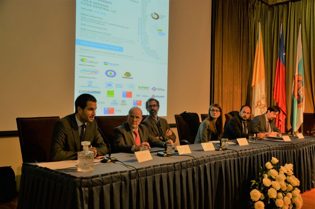 El ministro Alejandro Ruiz, presidente (s) del Tribunal Ambiental de Santiago cumplió el rol de moderador en el panel “Uso de agua y conflictividad” en las XXI Jornadas de Derecho y Gestión de Aguas, organizadas por la Facultad de Derecho UC y el Centro de Derecho y Gestión de Aguas de la Pontificia Universidad Católica de Chile.
