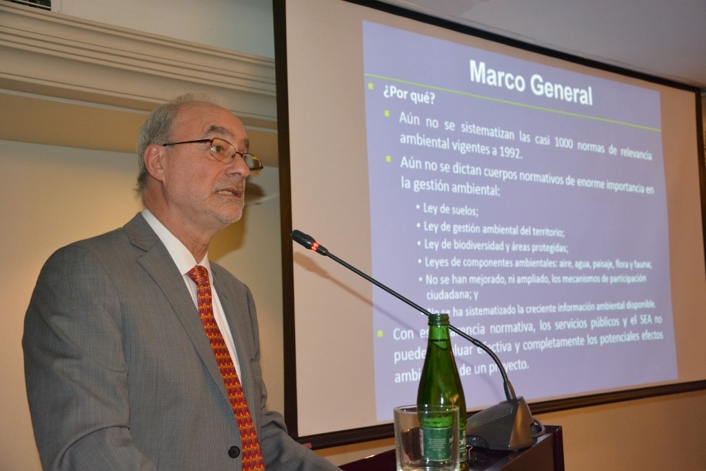 valuación de Impacto Ambiental, el presidente del Tribunal enfatizó que “la gestión ambiental es mucho más que la evaluación de impacto ambiental. El SEIA, para ser efectivo requiere de la existencia y funcionamiento de un adecuado marco normativo, el cual más que complementario es simplemente imprescindible para que el sistema alcance su objetivo plenamente. Y además de ese marco normativo que Chile requiere urgentemente, en lo que dice relación con el SEIA, debieran de resolverse temas tales como: fortalecimiento institucional del SEA, modalidades de ingreso, tipologías de ingreso, procedimientos de regularización y actualización de proyectos, el rol del Comité de Ministros, formato de la RCA, caducidad y cambio de titularidad de la RCA, desarrollo temprano, participación ciudadana y proceso de consulta indígena, y elusión y fraccionamiento”.